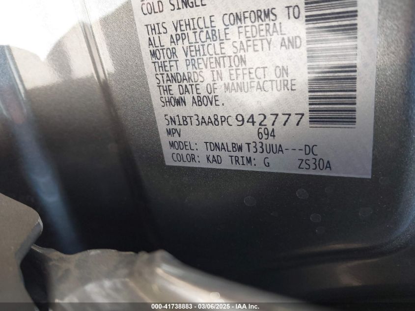 Color GrayCylinders 3Drive Front wheel driveVIN 5N1BT3AA8PC******State Run & Drive VerifiedDamage Front or back AutoRIA