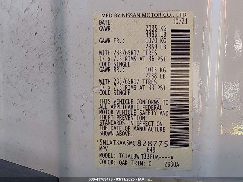 2021 NISSAN ROGUE 2021 Gasoline, 2.5, Front wheel drive, VIN - 5N1AT3AA5MC****** from the USA
