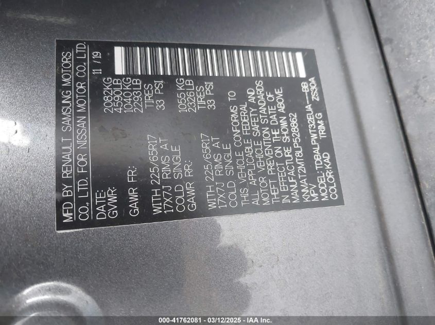 2020 NISSAN ROGUE 2020 Gasoline, 2.5, Front wheel drive, VIN - KNMAT2MT8LP****** from the USA