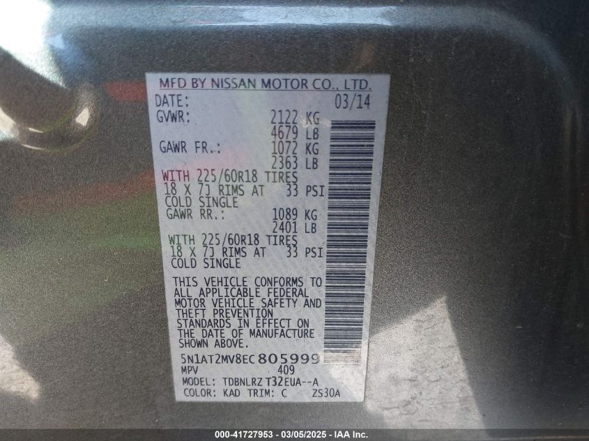 2014 NISSAN ROGUE 2014 Gasoline, 2.5, Full drive, VIN - 5N1AT2MV8EC****** from the USA