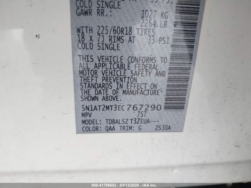 Color WhiteCylinders 4Drive Front wheel driveVIN 5N1AT2MT3EC******State Run & Drive VerifiedDamage Front or back AutoRIA