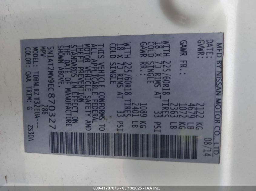 2014 NISSAN ROGUE 2014 Gasoline, 2.5, Full drive, VIN - 5N1AT2MV9EC****** from the USA