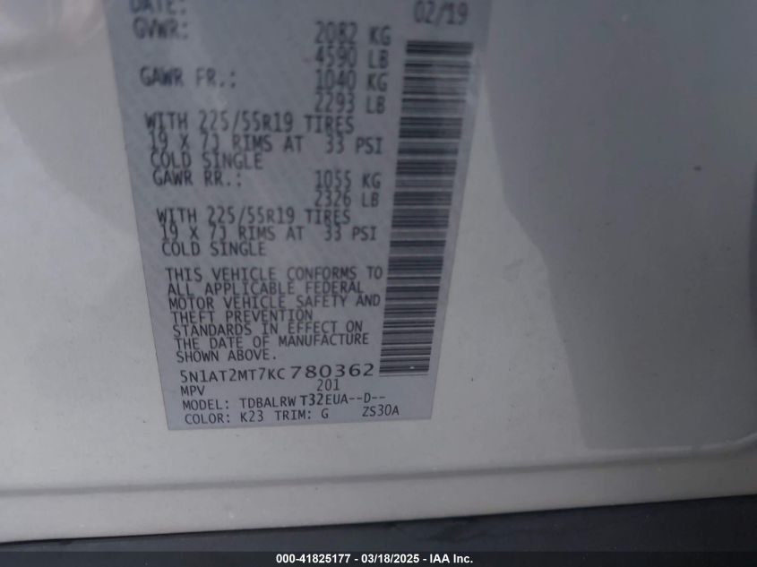2019 NISSAN ROGUE 2019 Gasoline, 2.5, Front wheel drive, VIN - 5N1AT2MT7KC****** from the USA