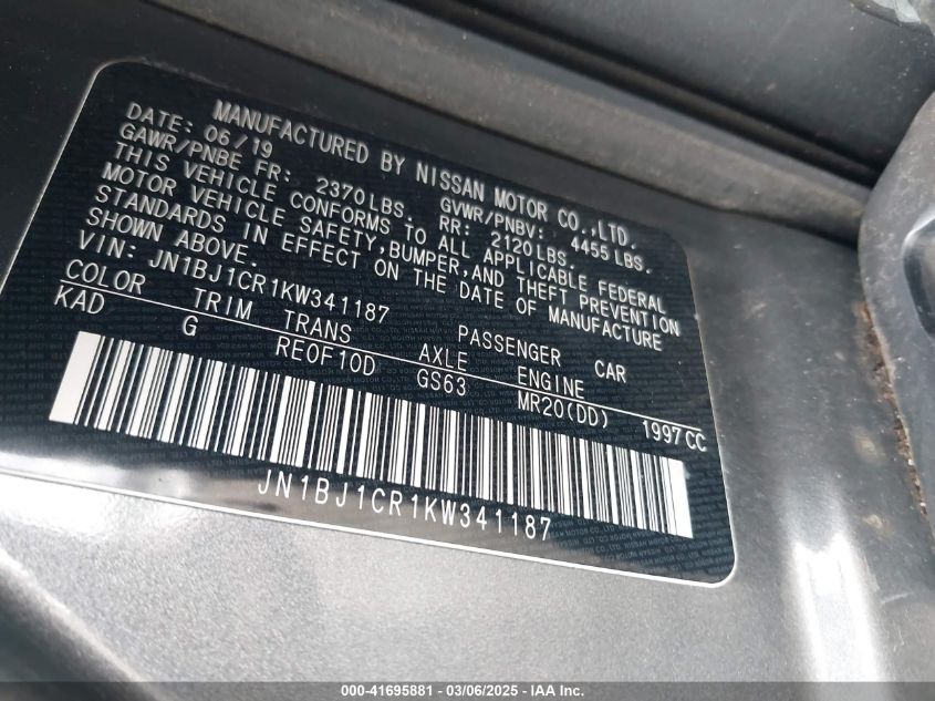 Color GrayCylinders 4Drive Full driveVIN JN1BJ1CR1KW******State Run & Drive VerifiedDamage Front and back AutoRIA