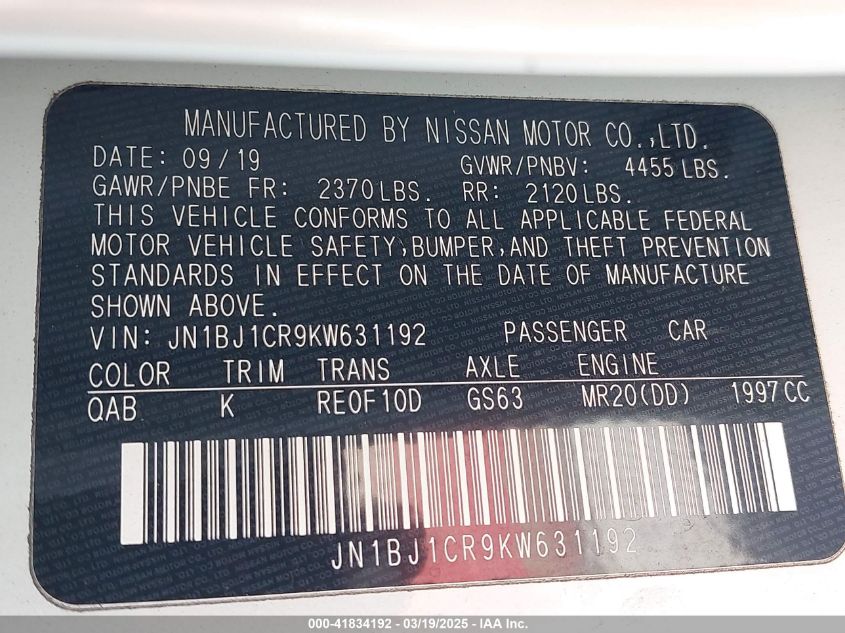 Color WhiteCylinders 4Drive Full driveVIN JN1BJ1CR9KW******State Run & Drive VerifiedDamage Back AutoRIA