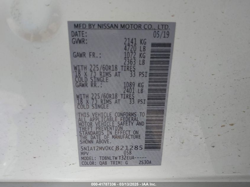 2019 NISSAN ROGUE 2019 Gasoline, 2.5, Full drive, VIN - 5N1AT2MV0KC****** from the USA