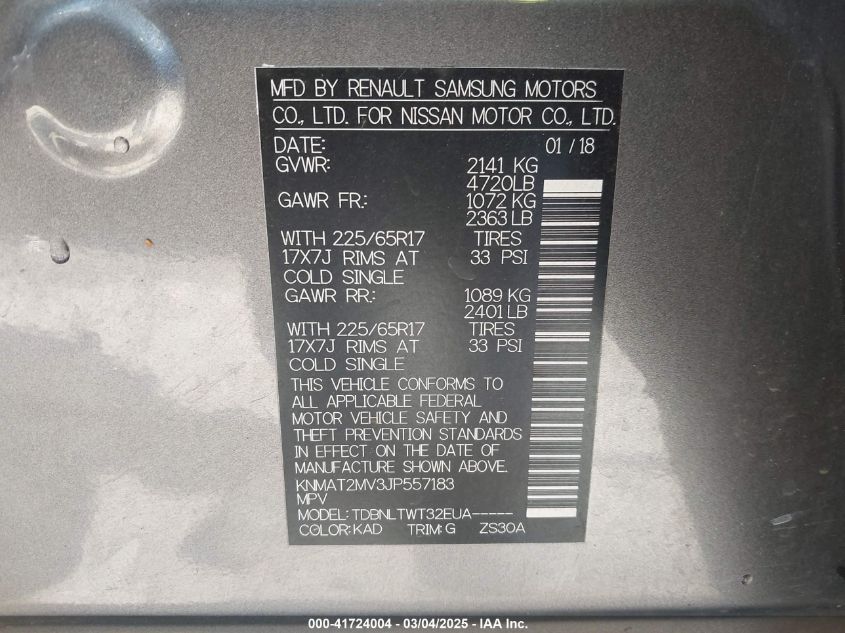 2018 NISSAN ROGUE 2018 Gasoline, 2.5, Full drive, VIN - KNMAT2MV3JP****** from the USA