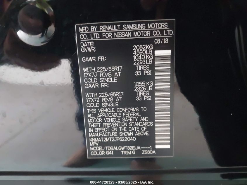 2018 NISSAN ROGUE 2018 Gasoline, 2.5, Front wheel drive, VIN - KNMAT2MT2JP****** from the USA
