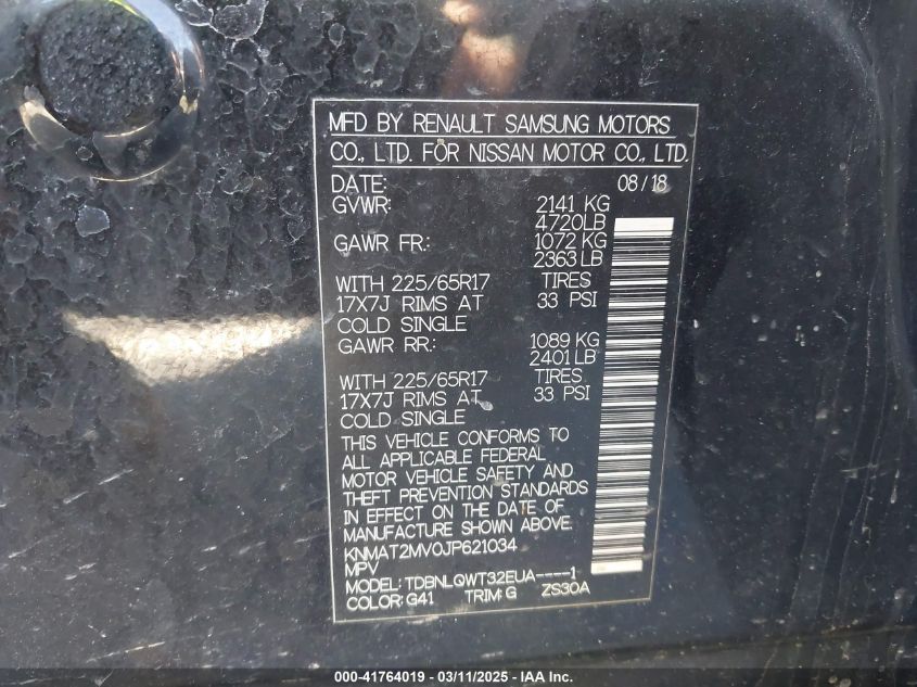 2018 NISSAN ROGUE 2018 Gasoline, 2.5, Full drive, VIN - KNMAT2MV0JP****** from the USA