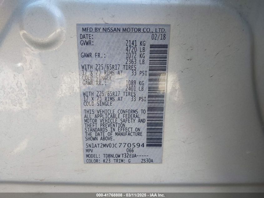 2018 NISSAN ROGUE 2018 Gasoline, 2.5, Full drive, VIN - 5N1AT2MV0JC****** from the USA