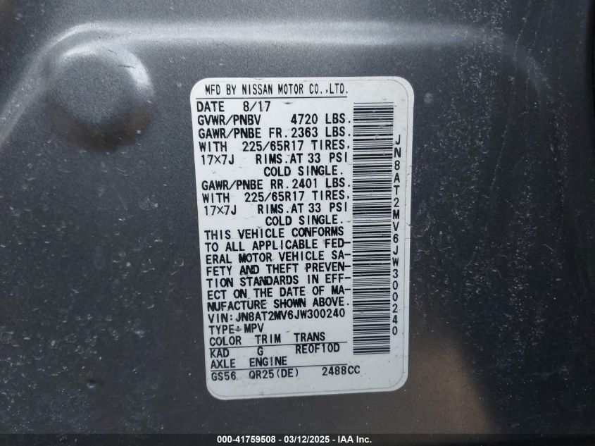 2018 NISSAN ROGUE 2018 Gasoline, 2.5, Full drive, VIN - JN8AT2MV6JW****** from the USA
