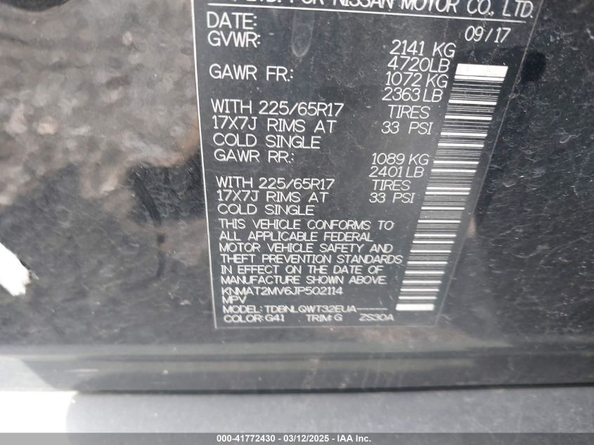 2018 NISSAN ROGUE 2018 Gasoline, 2.5, Full drive, VIN - KNMAT2MV6JP****** from the USA