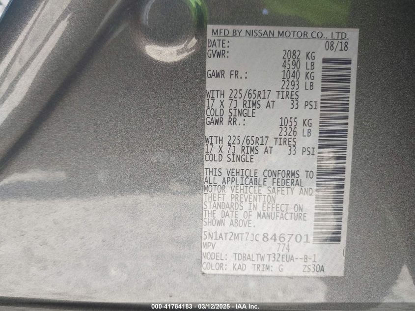 2018 NISSAN ROGUE 2018 Gasoline, 2.5, Front wheel drive, VIN - 5N1AT2MT7JC****** from the USA