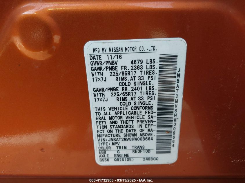 2017 NISSAN ROGUE 2017 Gasoline, 2.5, Full drive, VIN - JN8AT2MV8HW****** from the USA