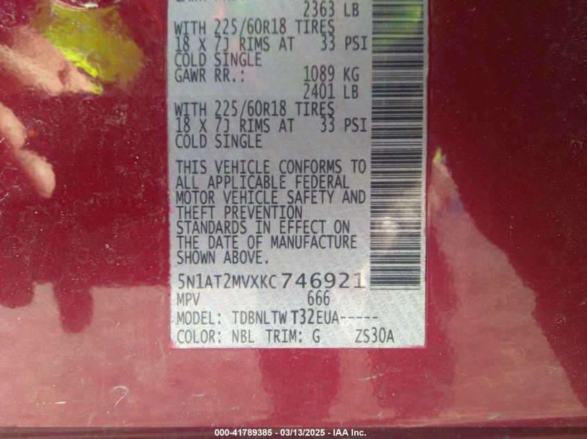 Color RedCylinders 4Drive Full driveVIN 5N1AT2MVXKC******State Run & Drive VerifiedDamage Front or back AutoRIA