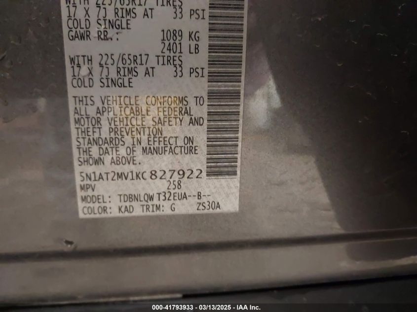 2019 NISSAN ROGUE 2019 Gasoline, 2.5, Full drive, VIN - 5N1AT2MV1KC****** from the USA