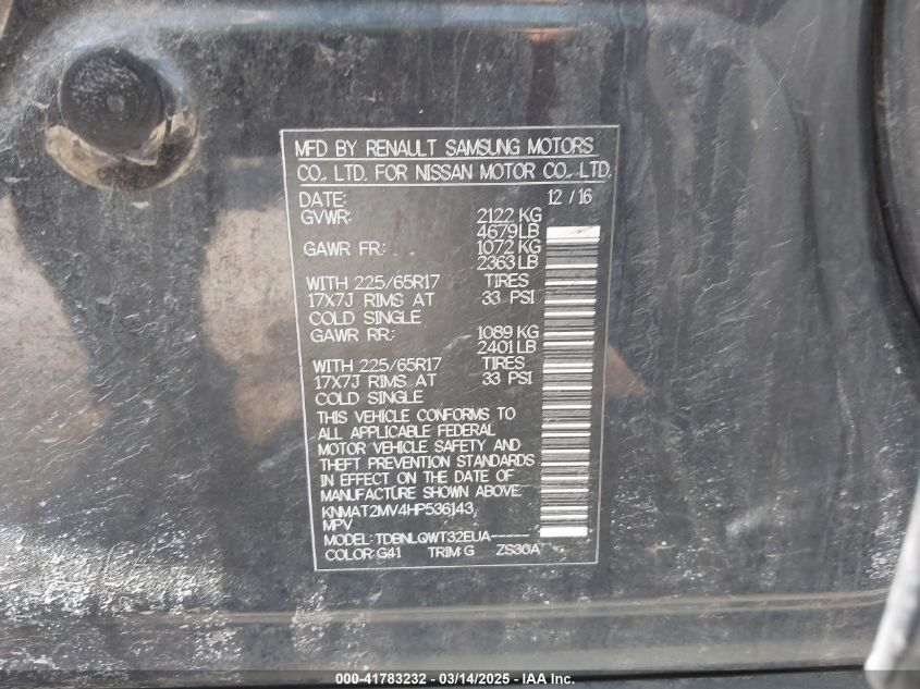 2017 NISSAN ROGUE 2017 Gasoline, 2.5, Full drive, VIN - KNMAT2MV4HP****** from the USA