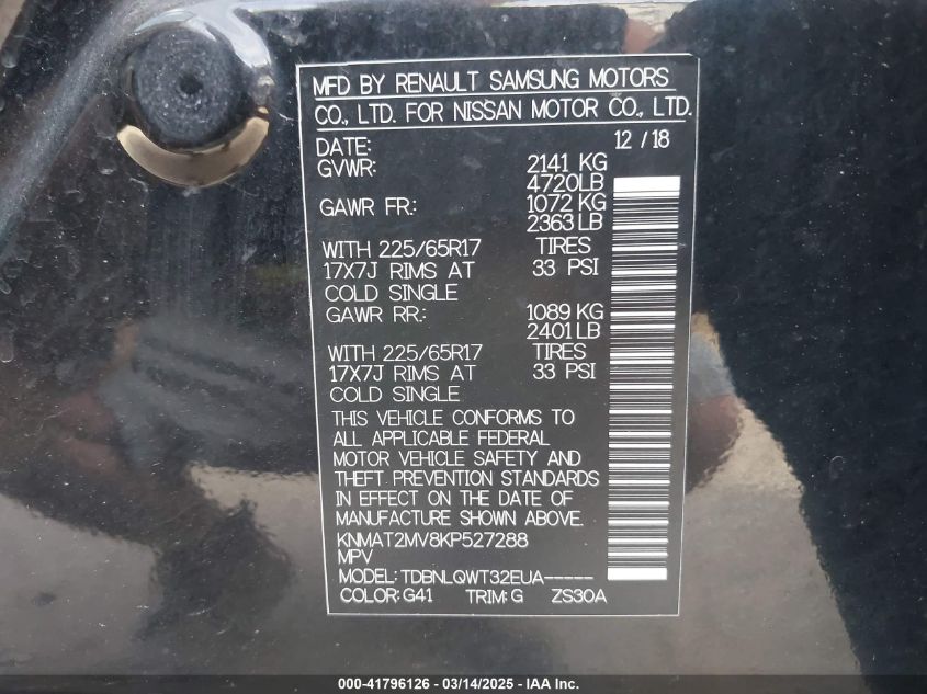 2019 NISSAN ROGUE 2019 Gasoline, 2.5, Full drive, VIN - KNMAT2MV8KP****** from the USA