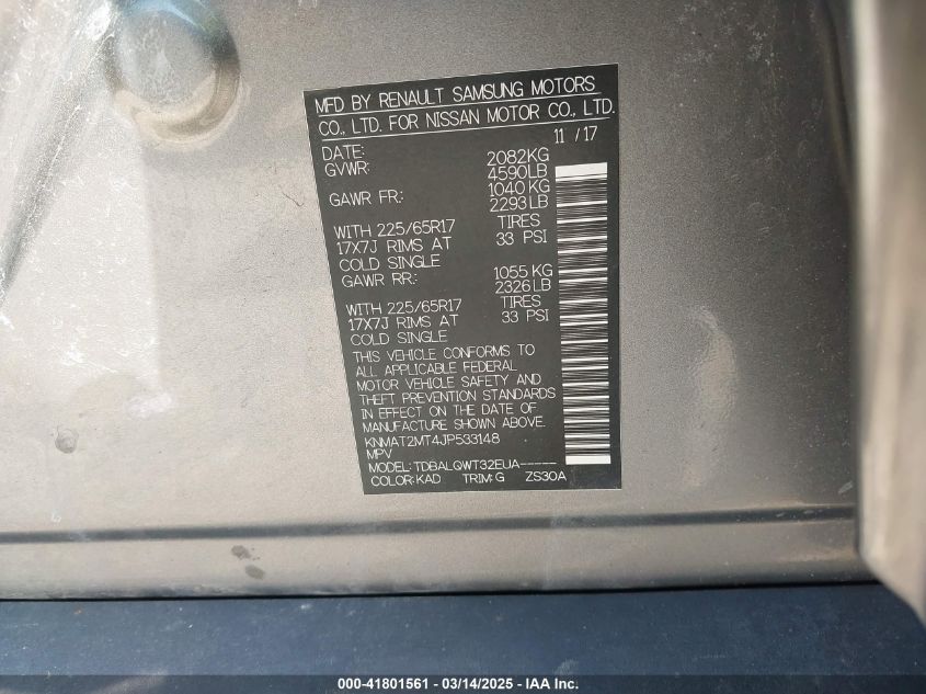 2018 NISSAN ROGUE 2018 Gasoline, 2.5, Front wheel drive, VIN - KNMAT2MT4JP****** from the USA