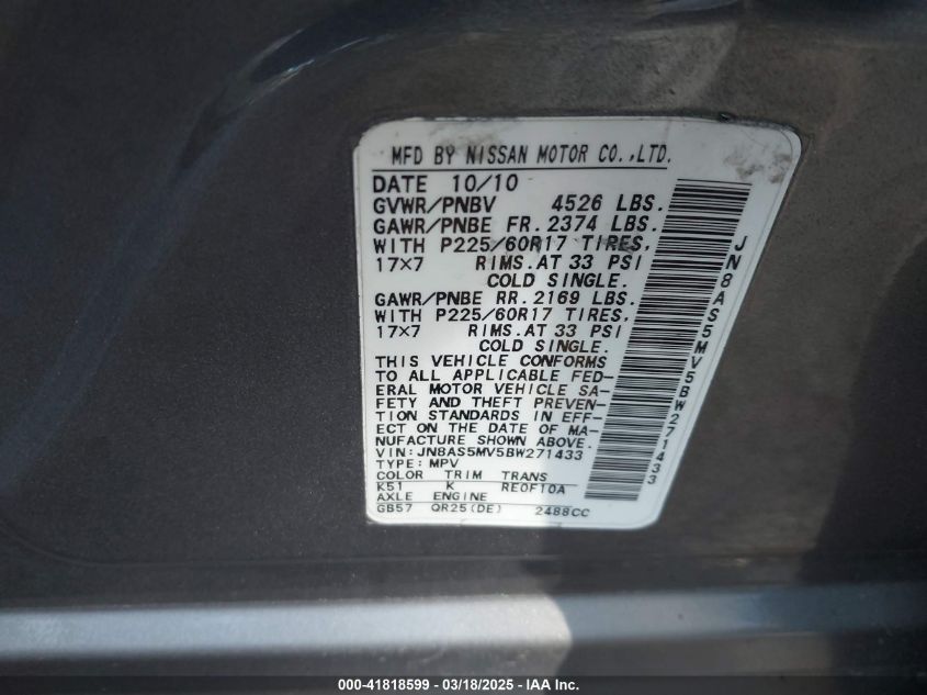 Color GrayCylinders 4Drive Full driveVIN JN8AS5MV5BW******State Run & Drive VerifiedDamage Front or back AutoRIA
