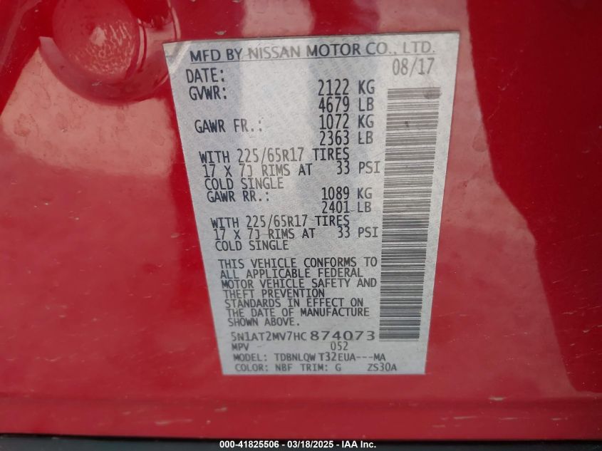 2017 NISSAN ROGUE 2017 Gasoline, 2.5, Full drive, VIN - 5N1AT2MV7HC****** from the USA