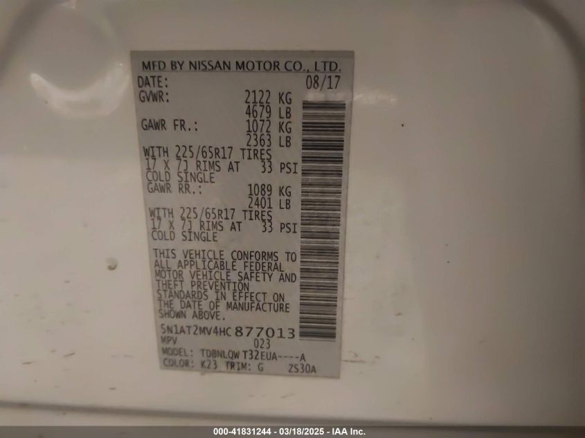 2017 NISSAN ROGUE 2017 Gasoline, 2.5, Full drive, VIN - 5N1AT2MV4HC****** from the USA