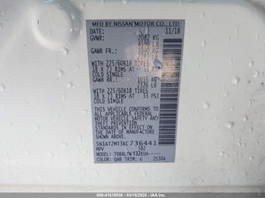 2019 NISSAN ROGUE 2019 Gasoline, 2.5, Front wheel drive, VIN - 5N1AT2MT3KC****** from the USA