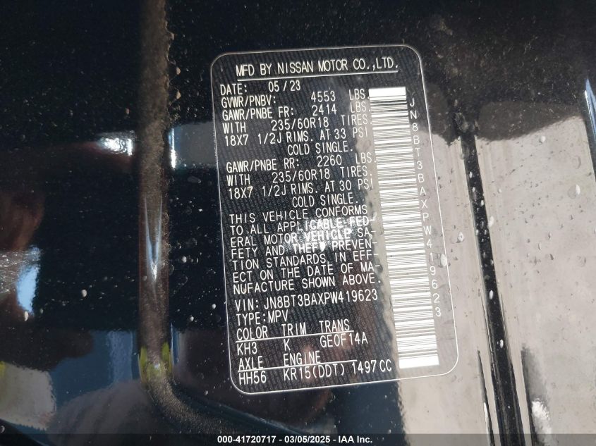 2023 NISSAN ROGUE 2023 Gasoline, 1.5, Front wheel drive, VIN - JN8BT3BAXPW****** from the USA