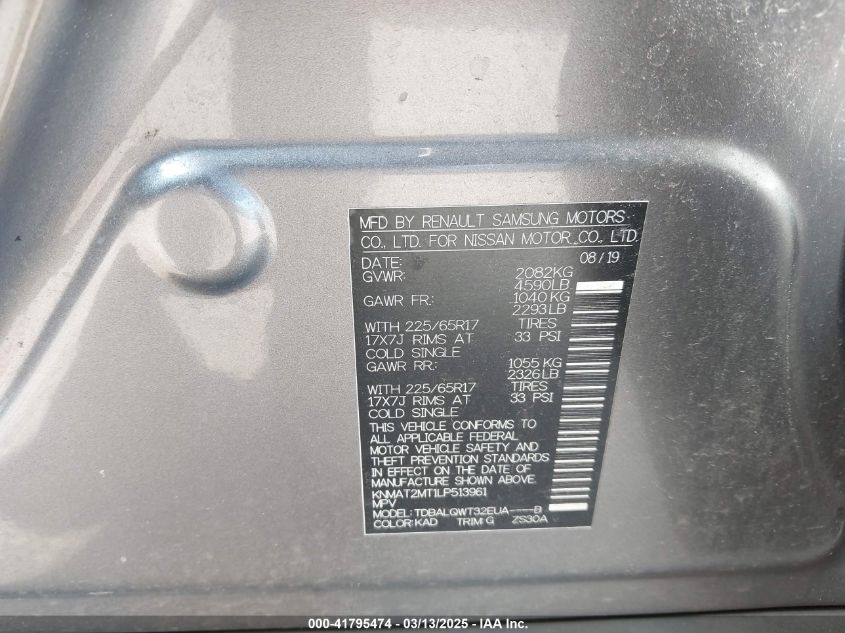 2020 NISSAN ROGUE 2020 Gasoline, 2.5, Front wheel drive, VIN - KNMAT2MT1LP****** from the USA