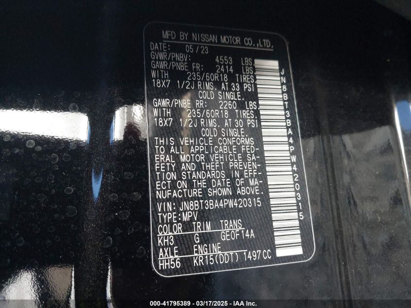 Color BlackCylinders 3Drive Front wheel driveVIN JN8BT3BA4PW******State Run & Drive VerifiedDamage Back AutoRIA