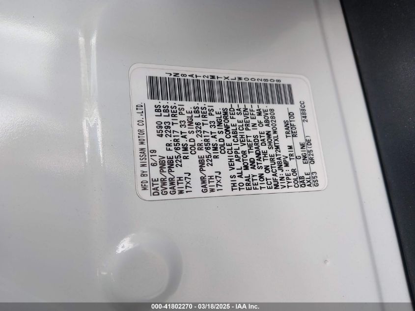 2020 NISSAN ROGUE 2020 Gasoline, 2.5, Front wheel drive, VIN - JN8AT2MTXLW****** from the USA