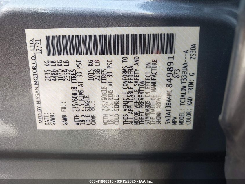 2021 NISSAN ROGUE 2021 Gasoline, 2.5, Front wheel drive, VIN - 5N1AT3BA4MC****** from the USA