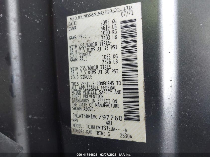 2021 NISSAN ROGUE 2021 Gasoline, 2.5, Full drive, VIN - 5N1AT3BB1MC****** from the USA