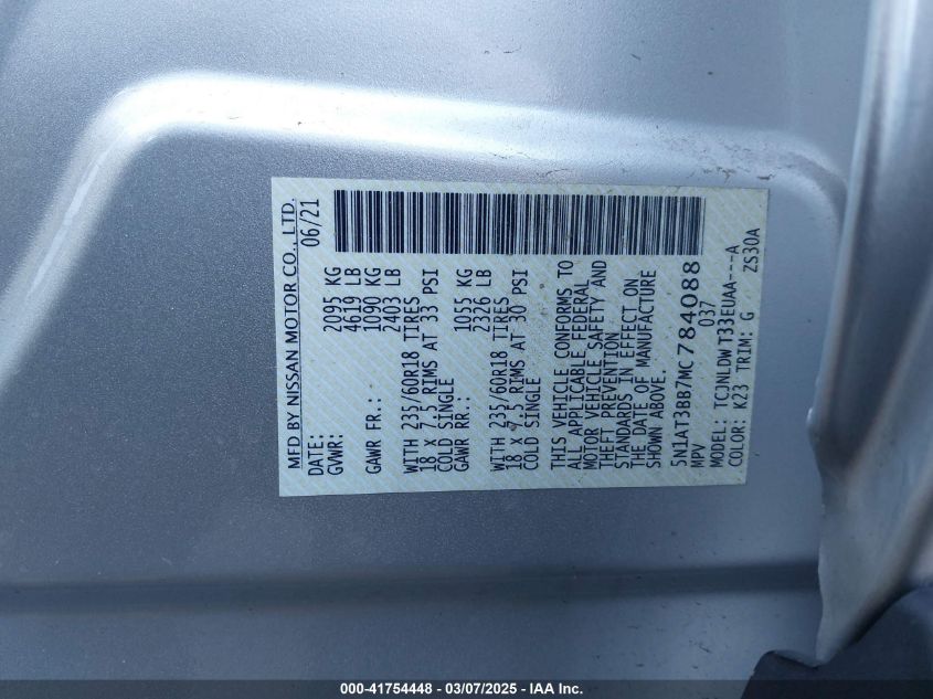 2021 NISSAN ROGUE 2021 Gasoline, 2.5, Full drive, VIN - 5N1AT3BB7MC****** from the USA