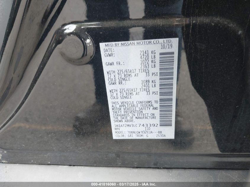 2020 NISSAN ROGUE 2020 Gasoline, 2.5, Full drive, VIN - 5N1AT2MV3LC****** from the USA