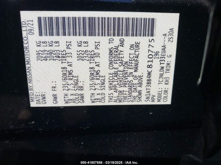 2021 NISSAN ROGUE 2021 Gasoline, 2.5, Full drive, VIN - 5N1AT3BB4MC****** from the USA