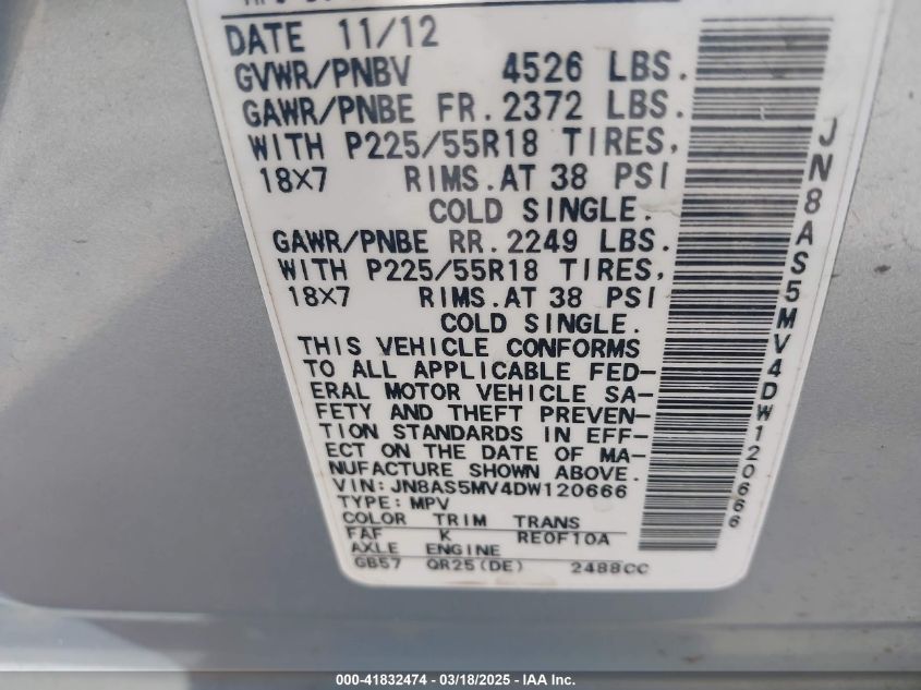 Color BlueCylinders 4Drive Full driveVIN JN8AS5MV4DW******State Run & Drive VerifiedDamage Front or back AutoRIA