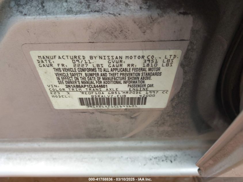 2012 NISSAN SENTRA 2012 Gasoline, 2.0, Front wheel drive, VIN - 3N1AB6AP1CL****** from the USA