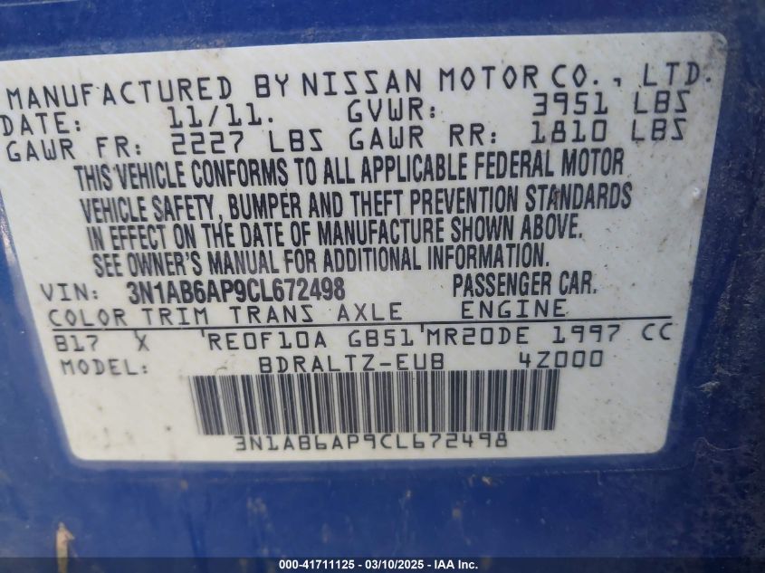 Color BlueCylinders 4Drive Front wheel driveVIN 3N1AB6AP9CL******State Run & Drive VerifiedDamage Front or back AutoRIA