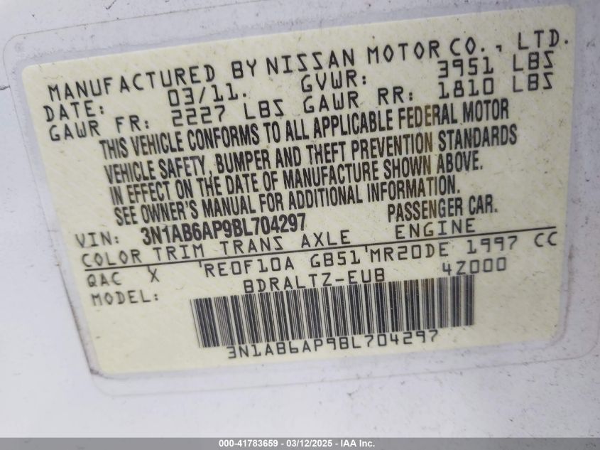 Color WhiteCylinders 4Drive Front wheel driveVIN 3N1AB6AP9BL******State Run & Drive VerifiedDamage InsignificantAuction date 2025-03-20 AutoRIA