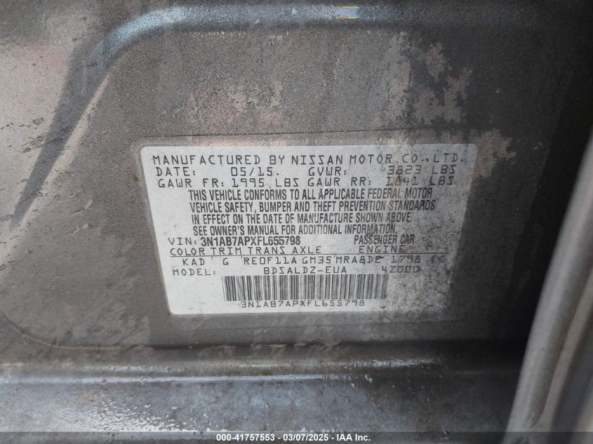 Color GrayCylinders 4Drive Front wheel driveVIN 3N1AB7APXFL******State Run & Drive VerifiedDamage All over the carAuction date 2025-03-24 AutoRIA