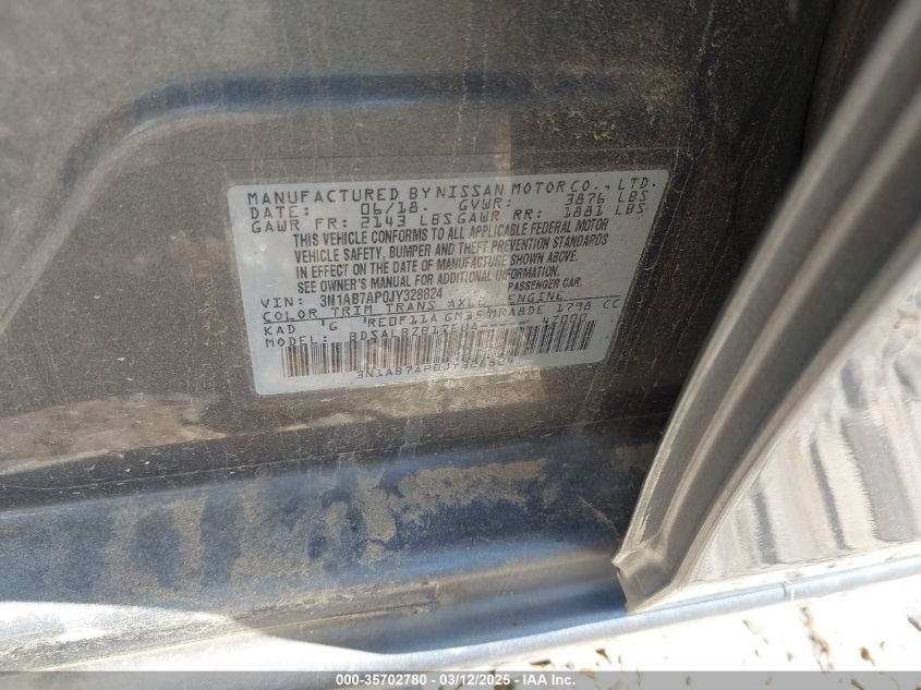 Color GrayCylinders 4Drive Front wheel driveVIN 3N1AB7AP0JY******State Run & Drive VerifiedDamage Front or backAuction date 2025-03-20 AutoRIA