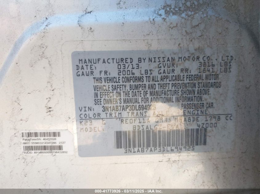 Color GrayCylinders 4Drive Front wheel driveVIN 3N1AB7AP3DL******State Run & Drive VerifiedDamage Front or back AutoRIA