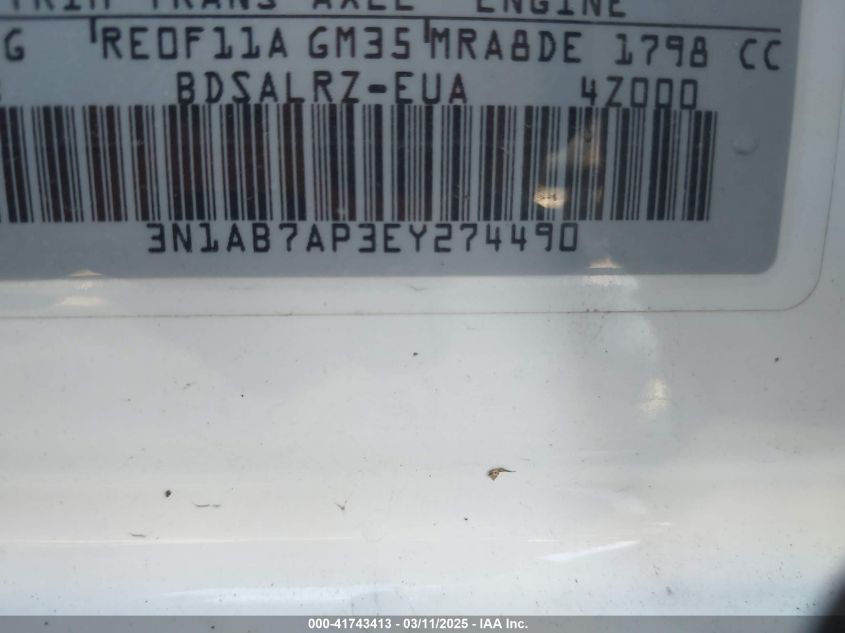 Color WhiteCylinders 4Drive Front wheel driveVIN 3N1AB7AP3EY******State Run & Drive VerifiedDamage Front or back AutoRIA