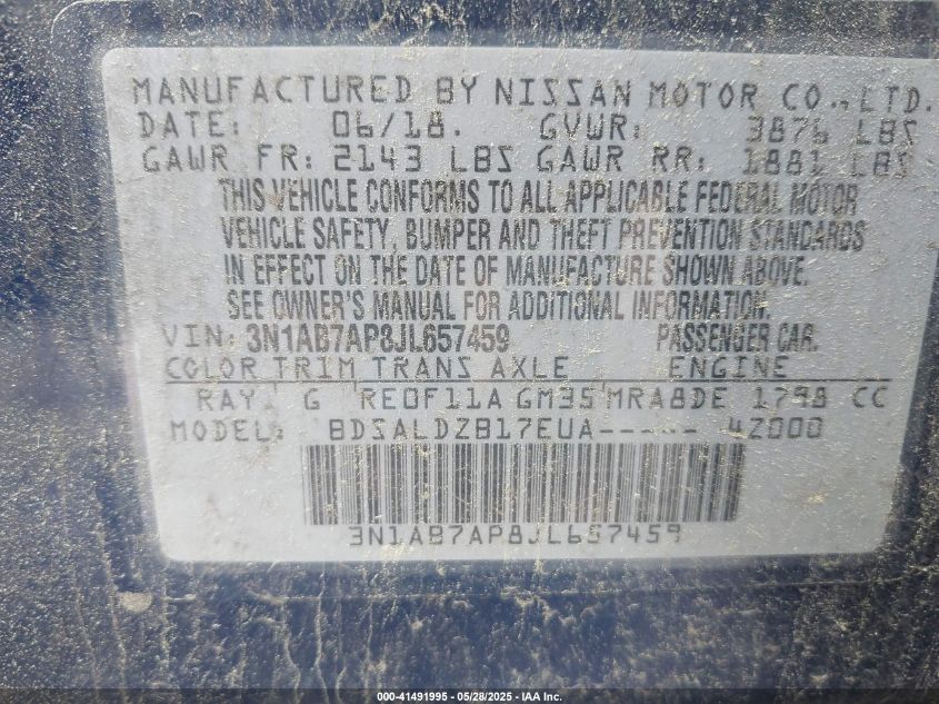 Color BlueCylinders 4Drive Front wheel driveVIN 3N1AB7AP8JL******State Run & Drive VerifiedDamage Front or back AutoRIA
