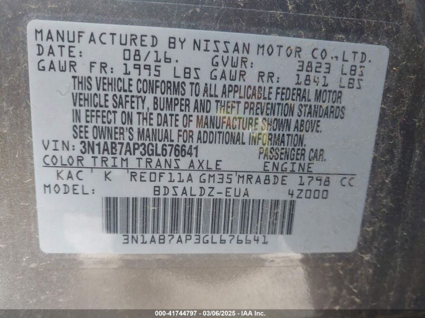 Color GrayCylinders 4Drive Front wheel driveVIN 3N1AB7AP3GL******State Run & Drive VerifiedDamage Back AutoRIA