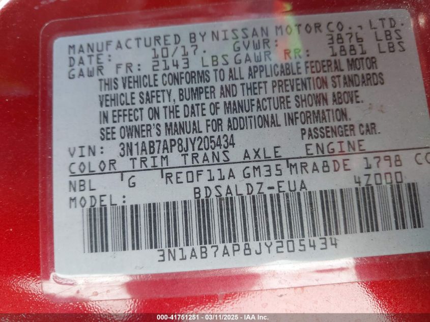 Color RedCylinders 4Drive Front wheel driveVIN 3N1AB7AP8JY******State Run & Drive VerifiedDamage Front or back AutoRIA