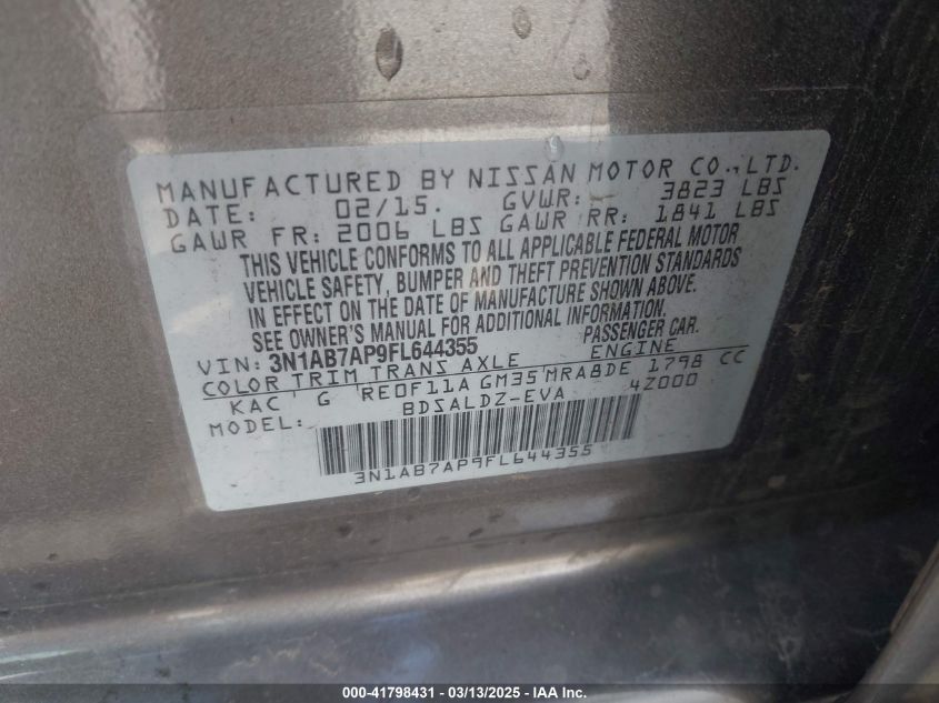 Color GrayCylinders 4Drive Front wheel driveVIN 3N1AB7AP9FL******State Run & Drive VerifiedDamage Left side AutoRIA
