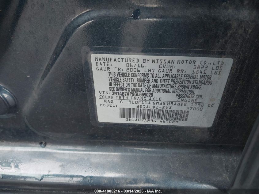 Color BlueCylinders 4Drive Front wheel driveVIN 3N1AB7AP9GL******State Run & Drive VerifiedDamage Front or back AutoRIA