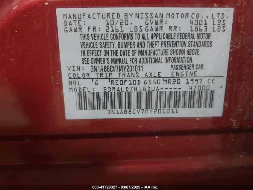 Color RedCylinders 4Drive Front wheel driveVIN 3N1AB8CV7MY******State Run & Drive VerifiedDamage Front or back AutoRIA